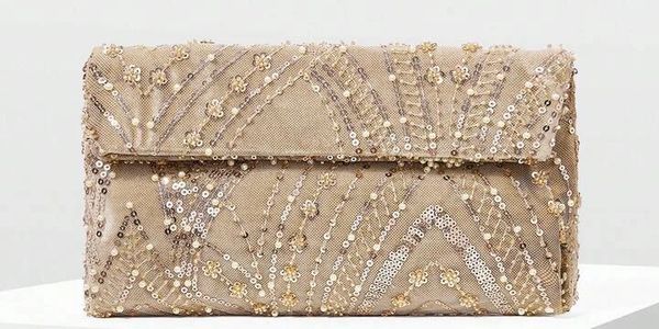 Elegant and timeless, the Champagne Nights Clutch exudes refined glamour. Crafted in a soft champagne hue, it features intricate hand-beaded detailing with shimmering sequins that catch the light beautifully. The art-deco-inspired pattern adds a touch of vintage sophistication, making it the perfect statement piece for weddings, evening events, or any special occasion.